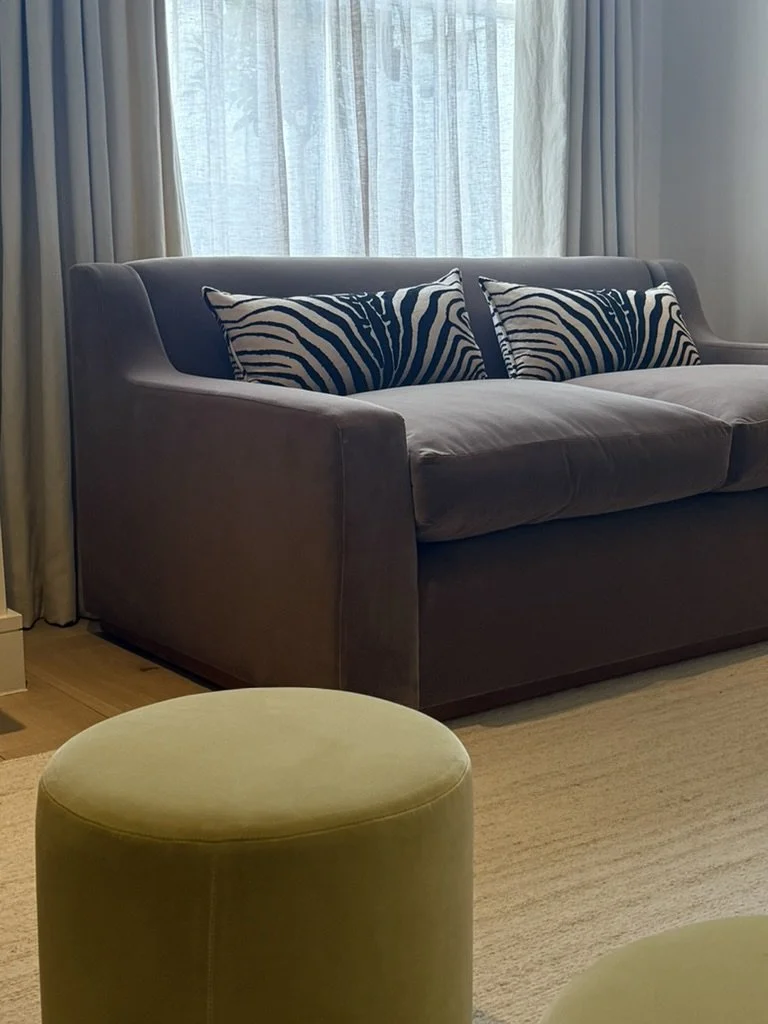 A Notting Hill apartment with personality and style, where masculine and feminine energy collide with layered patterns, pops of colour, and textured textiles that nod to existing artwork. Mid-century influences and bespoke pieces are woven throughout in characterful materials, creating a home that feels curated, vibrant, and effortlessly lived-in.